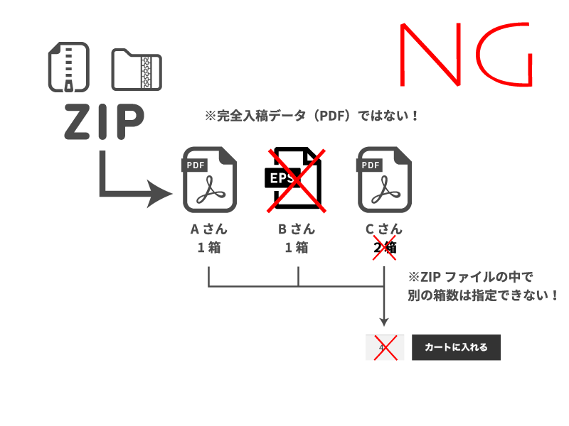 ※ZIP入稿の場合は、内部のデータを1箱ずつ作成いたします。